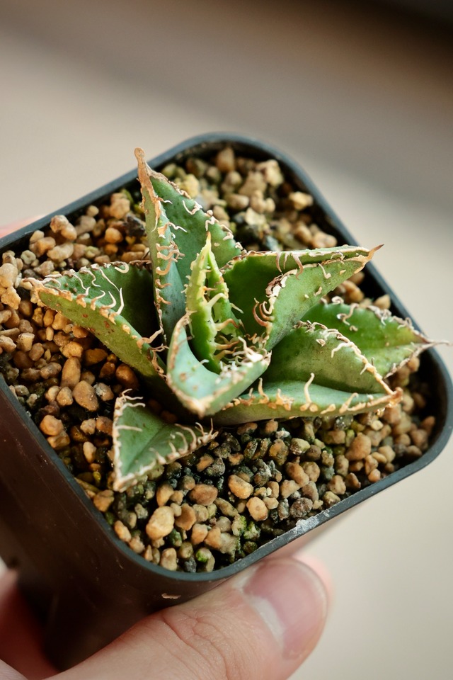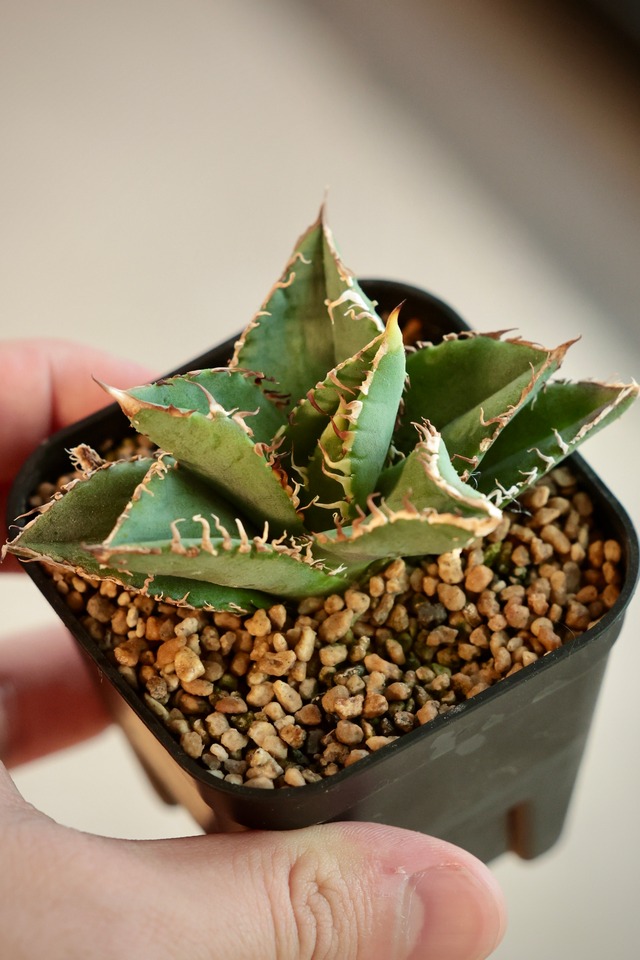 [金蟾王] 当店にて、中国福建省のナーセリーから輸入した Agave Titanota "金蟾王" (アガベ チタノタ キンセンオウ) となります。 ※ 画像1〜3枚目 : 販売株 画像4枚目 : 参考親株 輸入日 : 2024 年 2 月 4 日 撮影日 : 2025 年 7 月 22 日 ※ メリクロン (TC) 苗となります。 品種名は輸入時のものです。 植物のためお届け時には、サイズ・ 斑・花芽・下葉の枯れ・子株の外れなど、画像と容姿異なる可能性を予めご理解ください。 [当店での管理・商品の状態について] 入荷時に当店にて殺菌 ・ 殺虫処理を行っておりますが、お手元にて再度実施いただくことを推奨しております。 現在は、土耕にて管理しております。 ダメージ・汚れ・キズ、状態については写真をご確認ください。 [梱包・配送について] 抜き苗を天候状況やお届け日数等を考慮し可能な限り丁寧に梱包いたします。 代金のお支払い確定後、通常 1 〜 2日以内に第四種郵便にて発送いたします。 通常配送の場合には、全国一律送料無料となりますが、土日祝の配達が不可となります。 早めのを配達ご希望の場合には、配送オプションから 速達 (+300 円) をご選択ください。 (複数商品購入の場合には、1 商品分を速達としてご選択ください) [返品・交換について] 当店により商品状態に問題ないものを選抜し、出品しております。配送時の損傷や天候被害においては、腐敗など明らかに異なる場合を除き、返品や交換には、ご対応出来かねますことをご理解くださいませ。 商品内容についてお客様都合での返品や交換にはご対応いたしかねますことをご理解くださいませ。 [その他 ・ 注意点] 画像をよくご確認の上ご購入ください。 商品は植物のみとなります。 天候状況により予期せぬ遅延等が発生する可能性がございます。 配送時のトラブルについては当店でご対応いたしかねますことをご理解くださいませ。 商品は生き物であることをご理解いただきますようお願い申し上げます。 到着後は即座に開封を行なっていただき必ず状態をご確認いただきますようお願い申し上げます。 植物のためお届け時には、サイズ・ 斑・花芽・下葉の枯れ・子株の外れなどこ可能性を予めご理解くださいませ。 異常がある場合、到着後1時間以内に Instagram or X のDM にて異常がわかるように該当の商品の画像をお送りください。 不明点や気になる点がある際は購入の前にお問い合わせください。 厳重に梱包を行っておりますため、開封の際にもご注意ください。