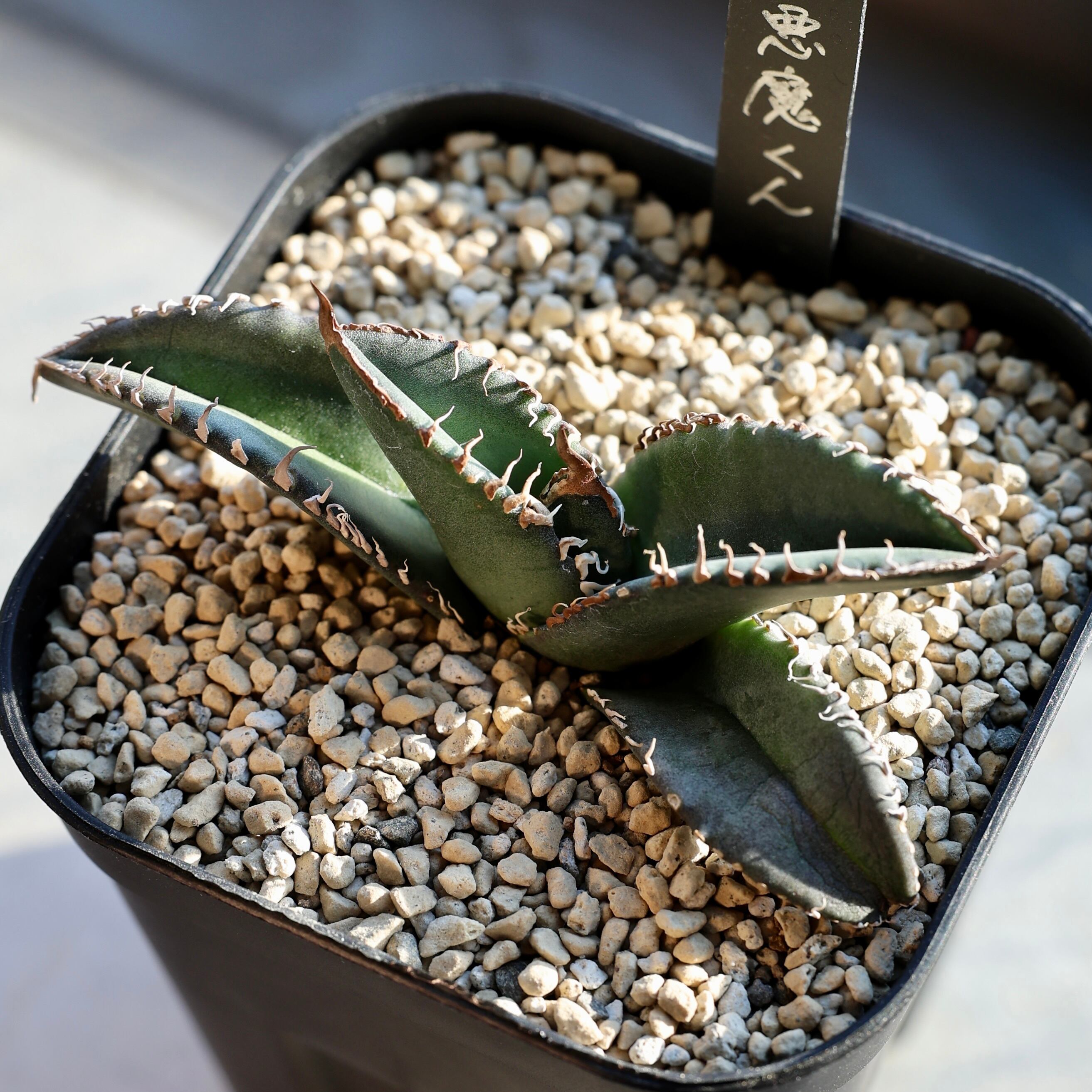 当店にて、中国福建省のナーセリーから輸入した Agave Titanota "悪魔くん" (アガベ チタノタ アクマクン) となります。