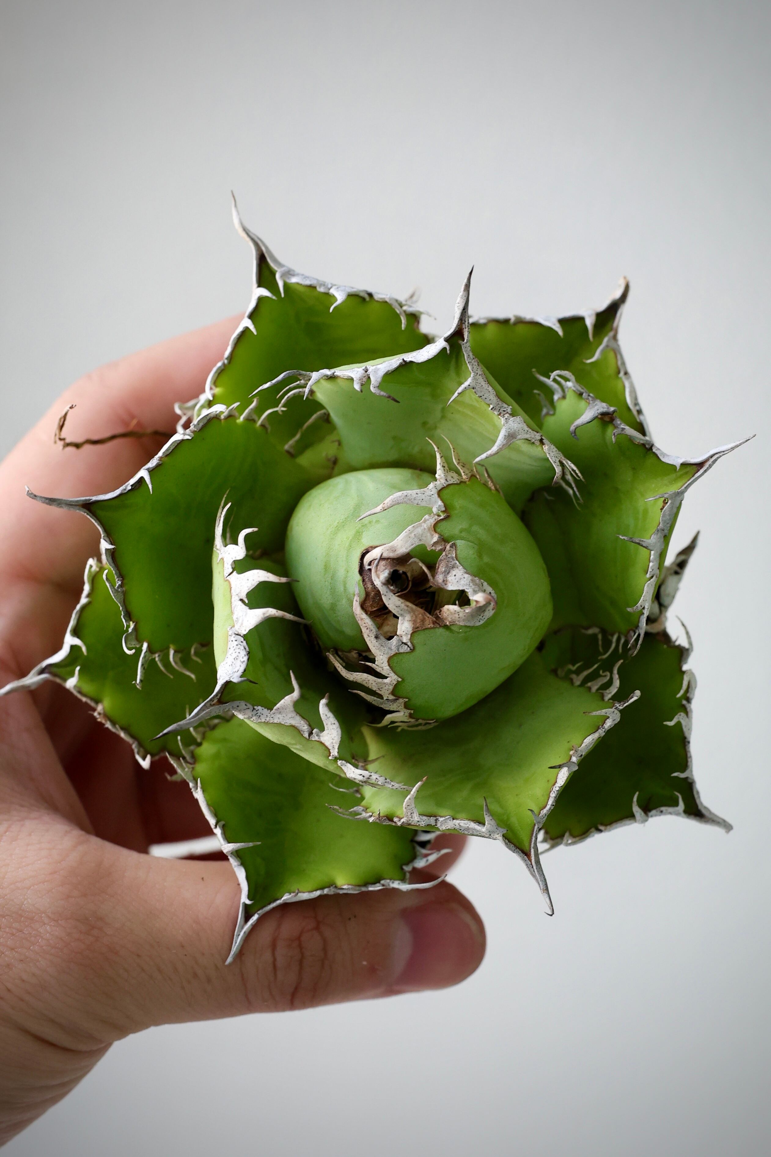 当店にて、Berlin ナーセリーから輸入した Agave Titanota "圓葉拇指" (アガベ チタノタ フィリグリー) となります。