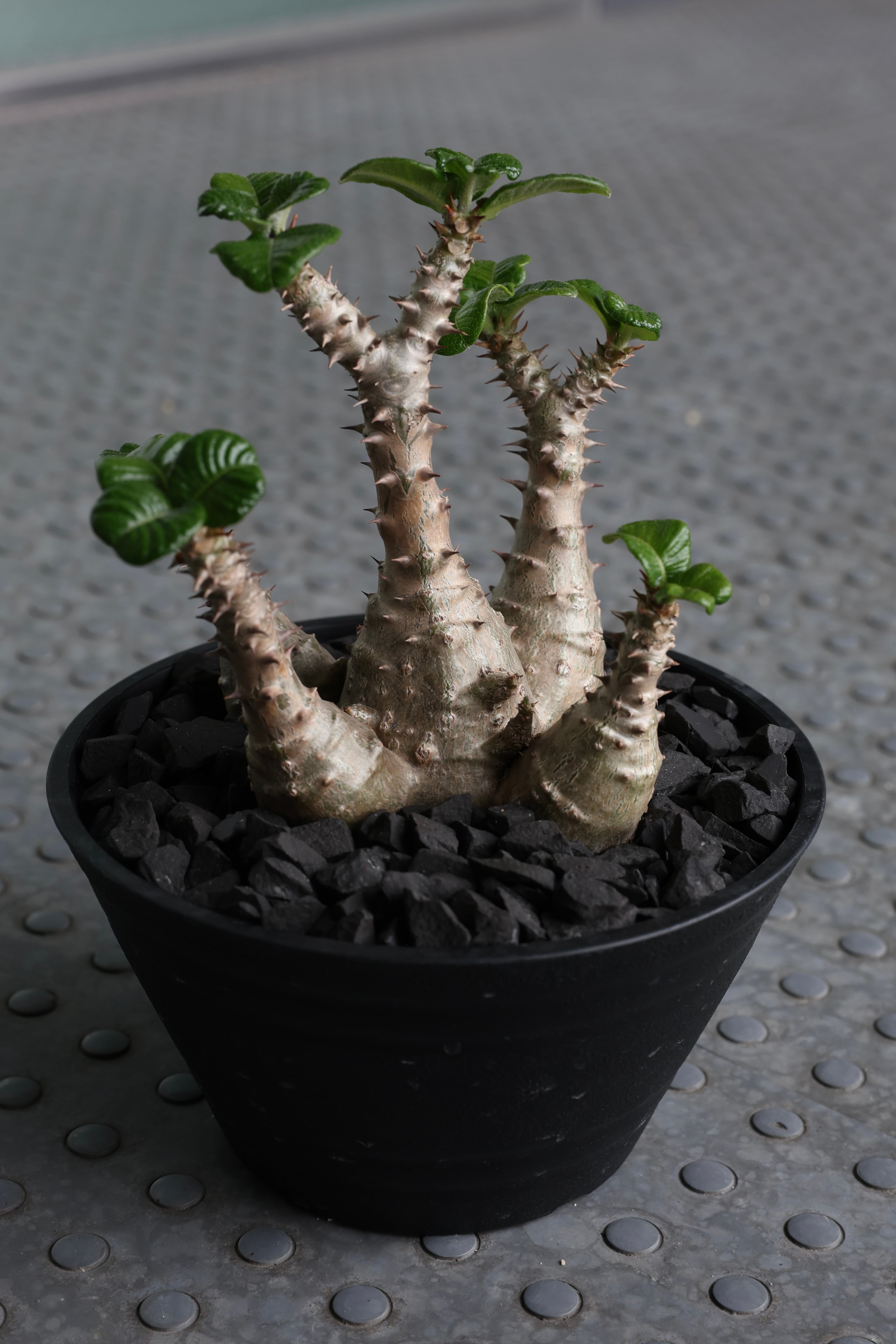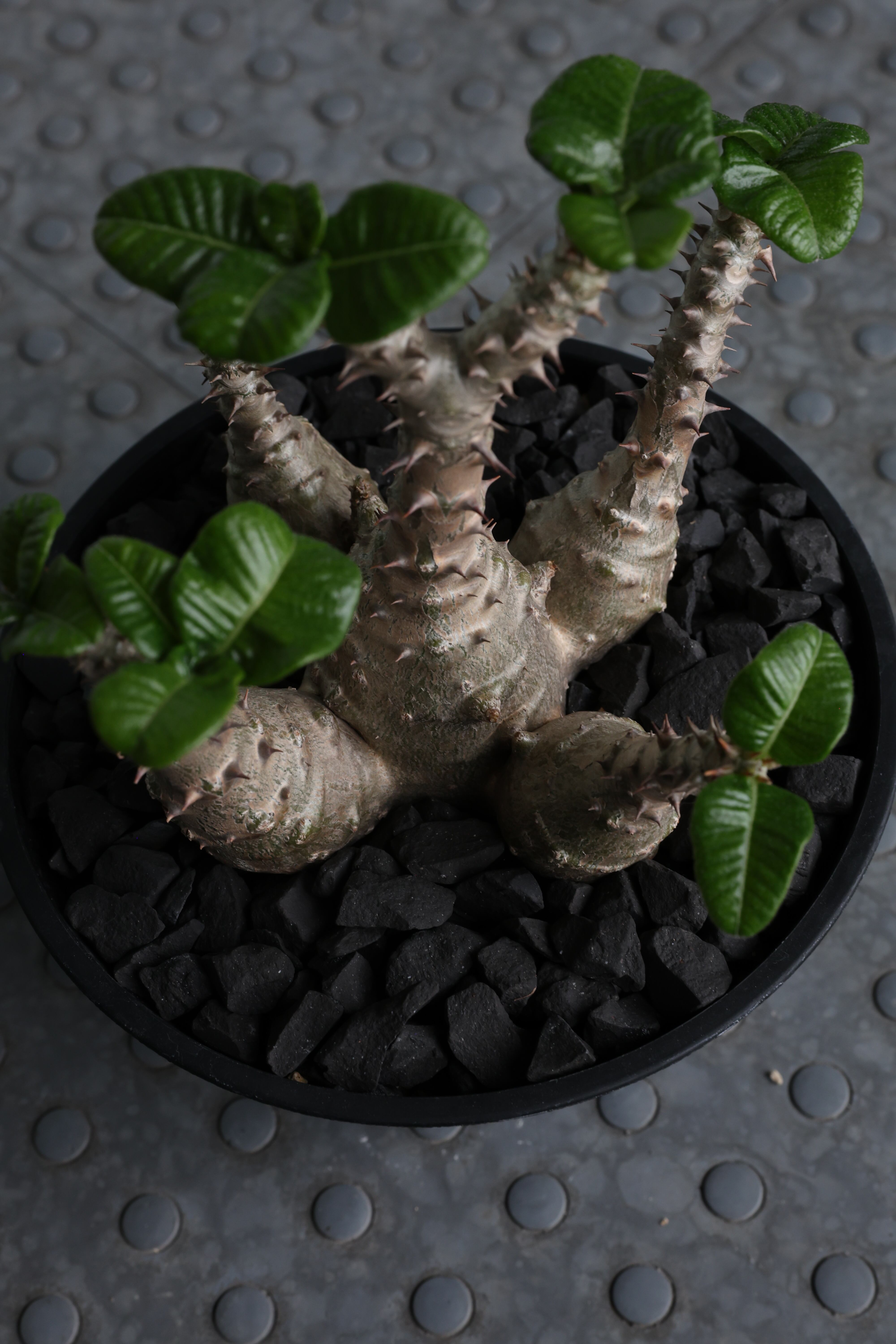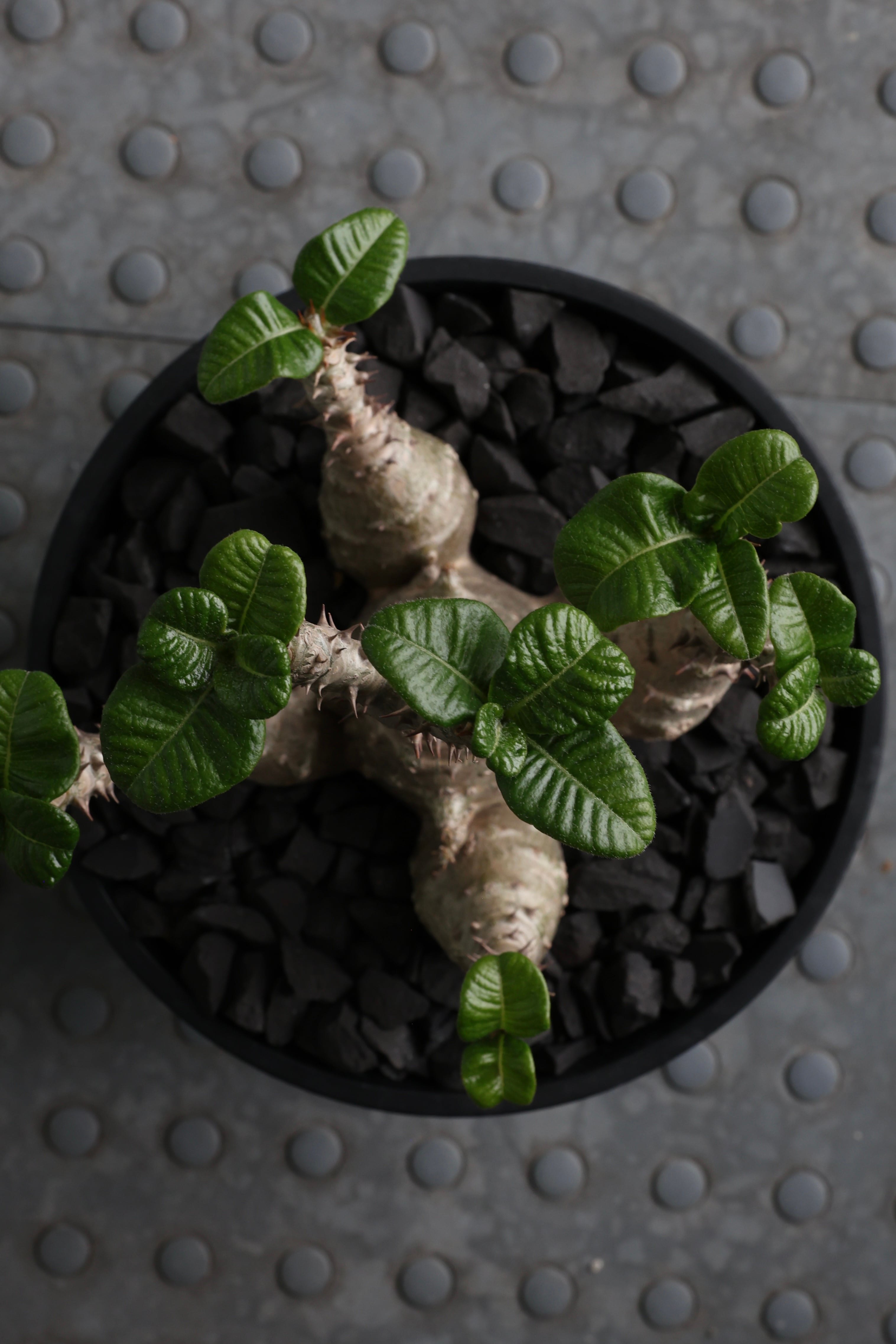 低重心にずっしりと太る塊根部分とぷっくりとした葉のコントラスト