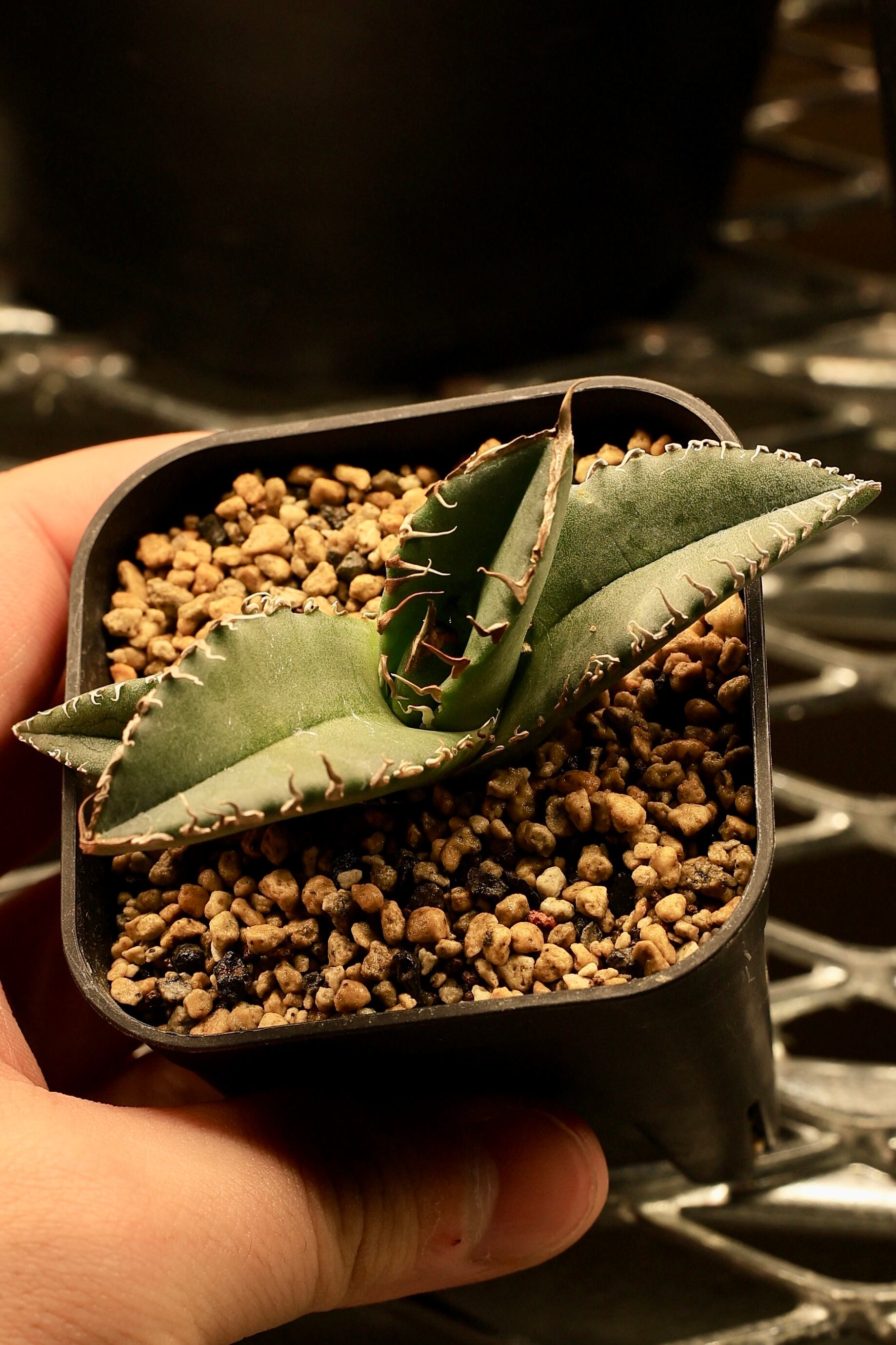 当店にて、中国福建省のナーセリーから輸入した Agave Titanota "悪魔くん、" (アガベ チタノタ アクマクン) となります。