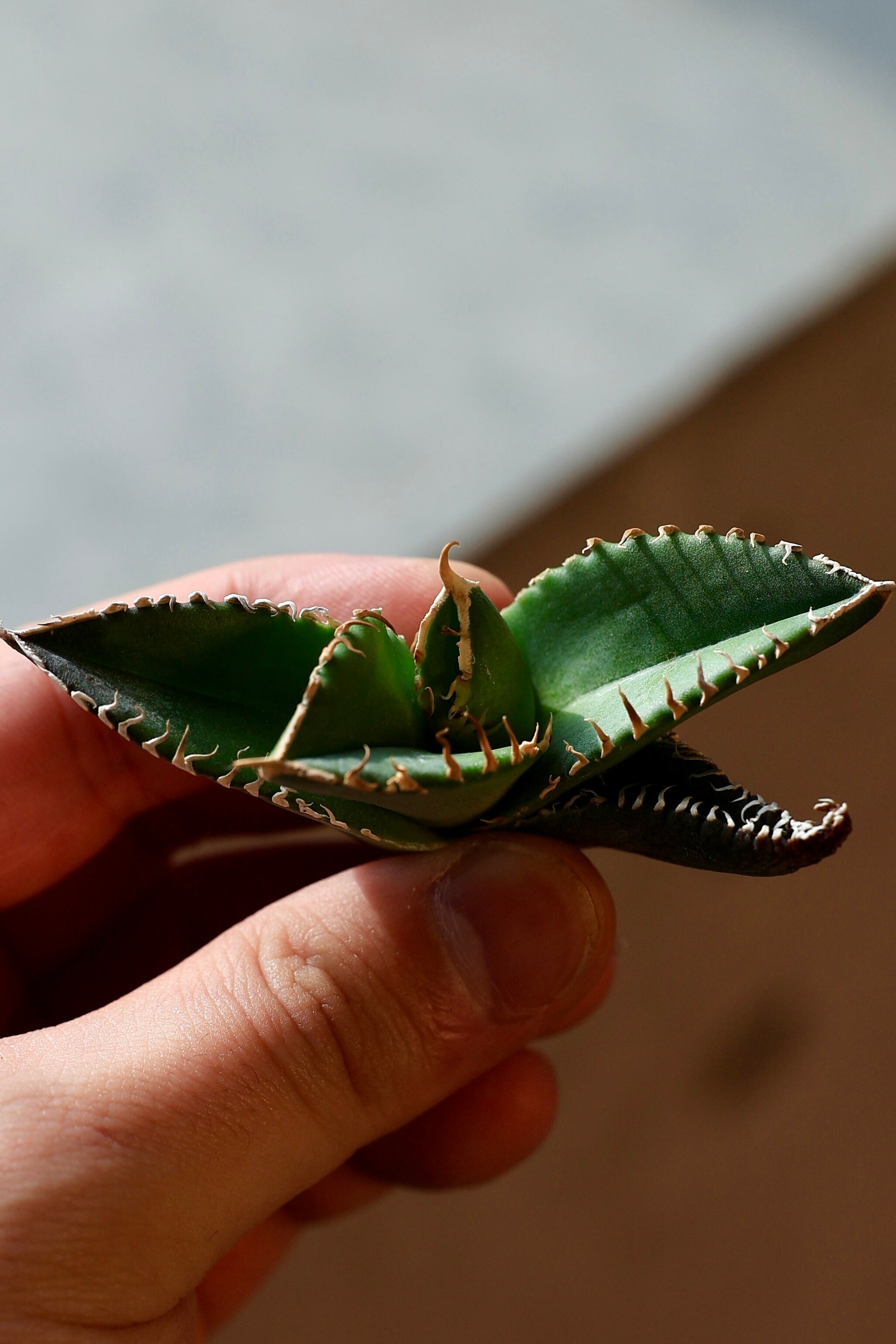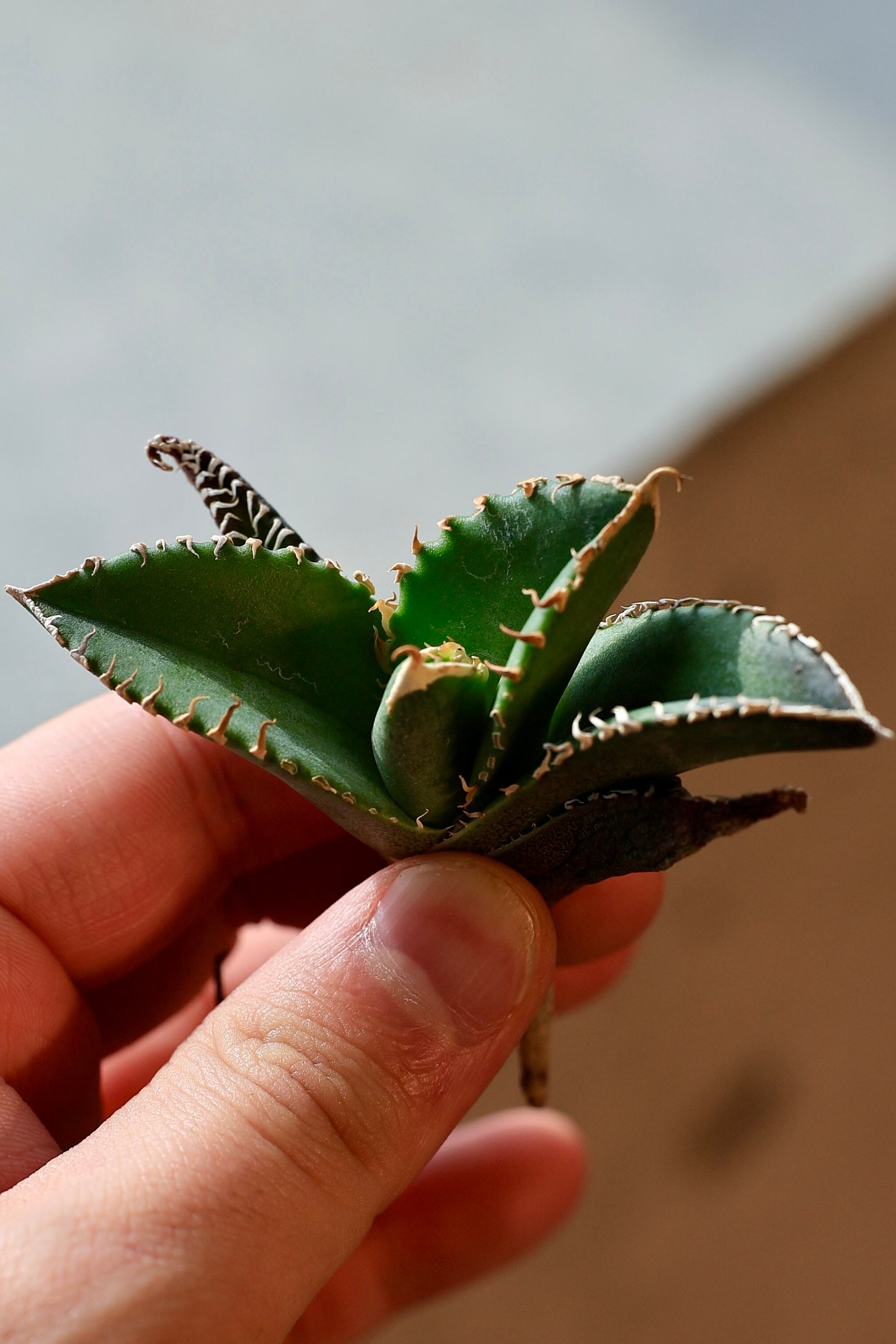 当店にて、中国福建省のナーセリーから輸入した Agave Titanota "白豪刺" (アガベ チタノタ ビャクゴウシ) となります。