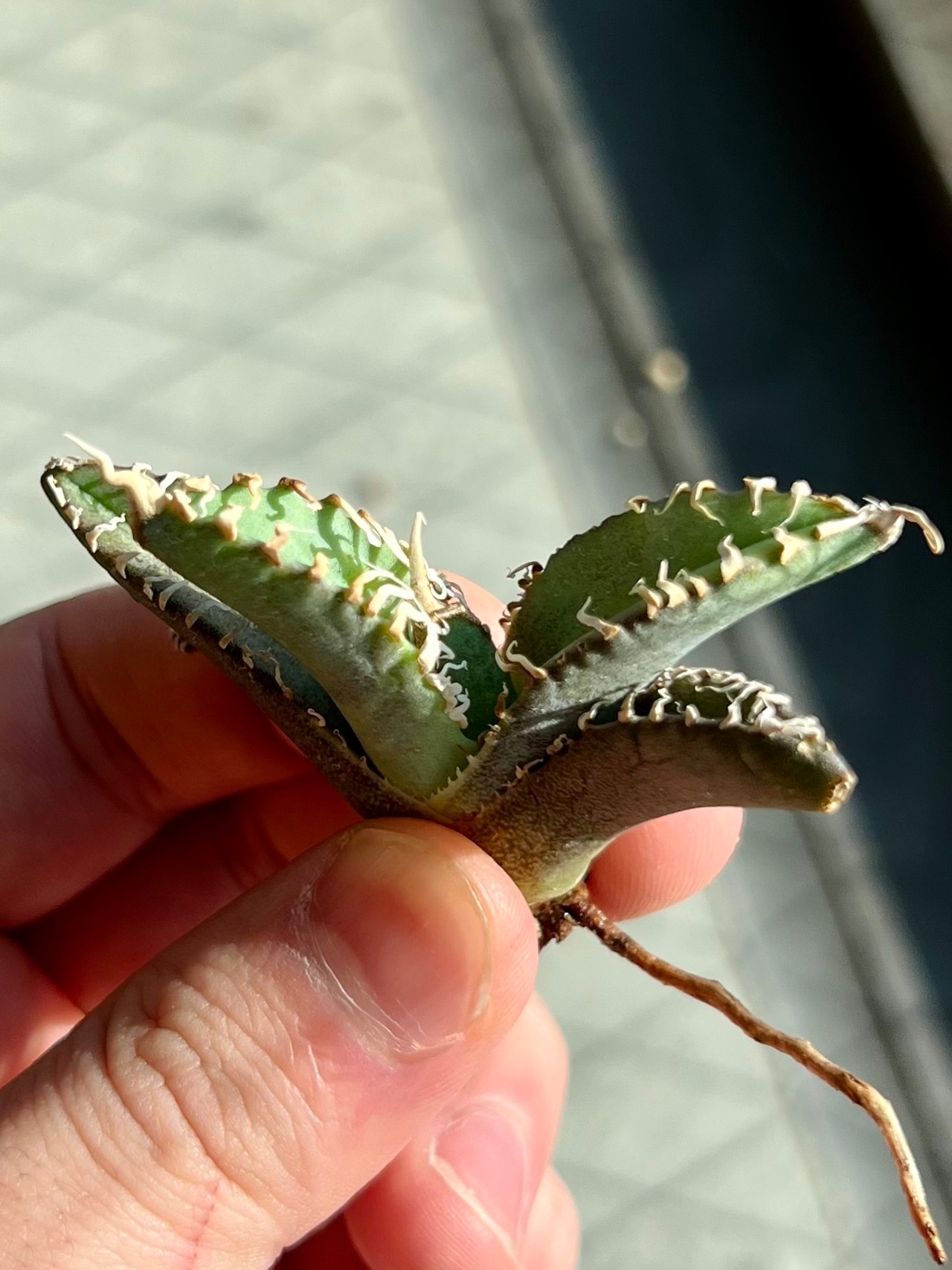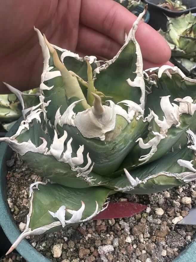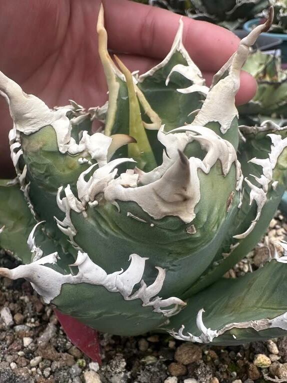 当店にて、中国福建省のナーセリーから輸入した Agave Titanota "白幽霊" (アガベ チタノタ シロユウレイ) となります。
